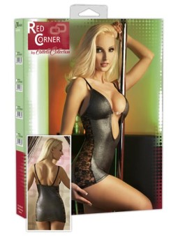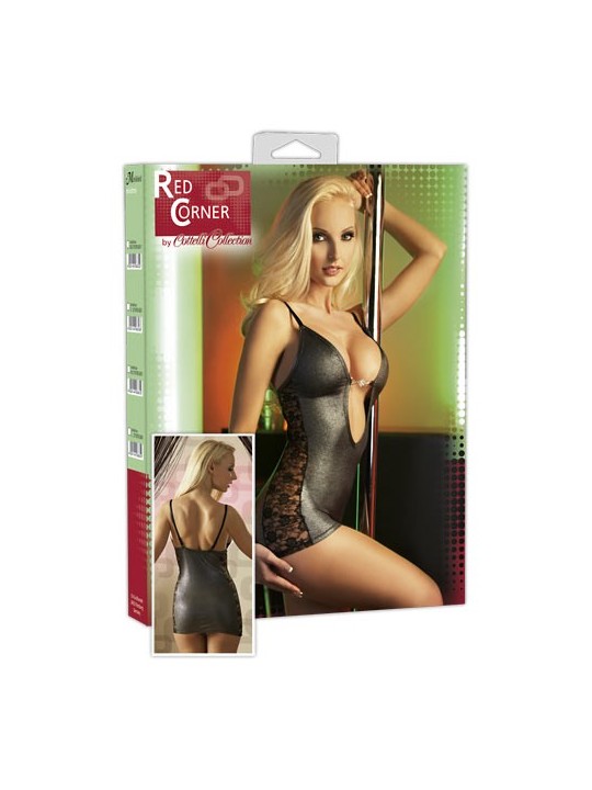 MINI ABITO NERO LUCIDO CON BANDE IN PIZZO