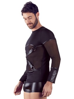 Camicia dall'aspetto opaco con maniche lunghe e un elegante inserto powernet sul davanti per mettere in mostra i muscoli di un uomo. La pettorina rimovibile (bottoni a pressione) ha dettagli belli ed esclusivi per lo spettatore ed è anche seducente, invitante e stuzzicherà l'appetito del partner.