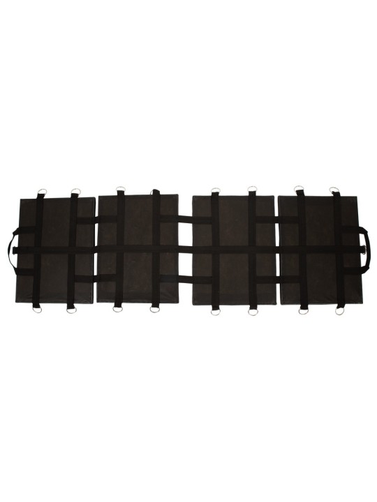 Extra lungo, pieghevole e con un sacco di accessori bondage!Tavola bondage 2.0 di You2Toys, composta da 4 superfici imbottite di seduta/sdraiata (60 x 60 cm) con rivestimento in similpelle di alta qualità e facile da curare, collegate tra loro da 3 cinghie stabili antistrappo. Questo rende la tavola molto flessibile, così che sono possibili diverse posizioni di bondage e la tavola può essere ripiegata dopo il gioco e facilmente trasportata o riposta.La tavola da bondage a montaggio rapido ha 8 anelli su ogni lato e 1 anello ciascuno all'estremità inclusa della testa e dei piedi (Ø 4,5 ciascuno), in cui le cinghie sono rapidamente agganciate individualmente con i loro moschettoni.Una volta montata, la tavola misura 60 cm x 193 cm o 183 cm quando le aree del sedile/lounge sono spinte insieme. Sono inclusi:4 manette (39 cm di lunghezza)4 polsini per le gambe (lunghezza 56 cm)1 x fermacollo (57,5 cm di lunghezza)Tutti i polsini sono larghi 5 cm, regolabili con chiusure in velcro e ciascuno con moschettone lungo 6,5 cm.2 x corda (1 x 4,5 m di lunghezza, 1 x 3 m di lunghezza)2 x catena con 2 moschettoni ciascuno (25 cm di lunghezza)1 x maschera per gli occhi (19 cm di lunghezza, con fascia elastica per la testa)1 x ball bavaglio (Ø 4 cm, cinghia per la testa lunga 59 cm, regolabile con 2 anelli a D)1 x frusta (flogger con 8 cinghie, lunga 37 cm, manico con anello a D lungo 12 cm)Poliestere, polipropilene, cotone, poliammide, PVC, metallo, TPE.